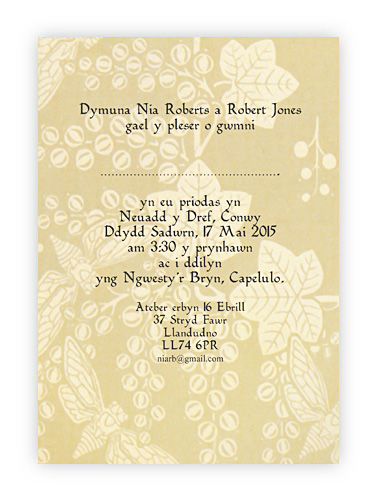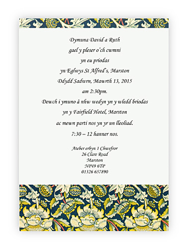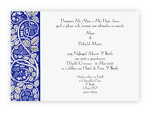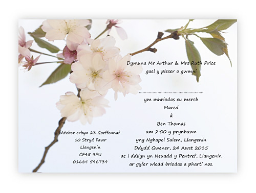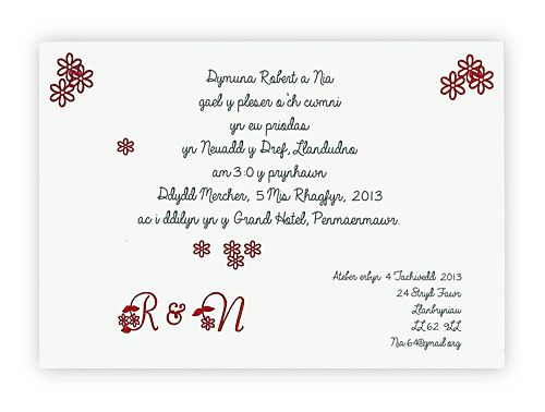 D.S. Os hoffech chi gael gwahoddiadau dwyieithog, mae hyn ar gael drwy argraffu ar ddwy ochr y cerdyn.