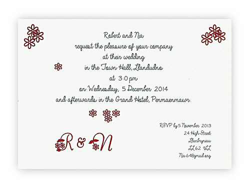 Please note: if you would like your invitations to be bilingual, this is available for all cards by printing on both sides of the card.